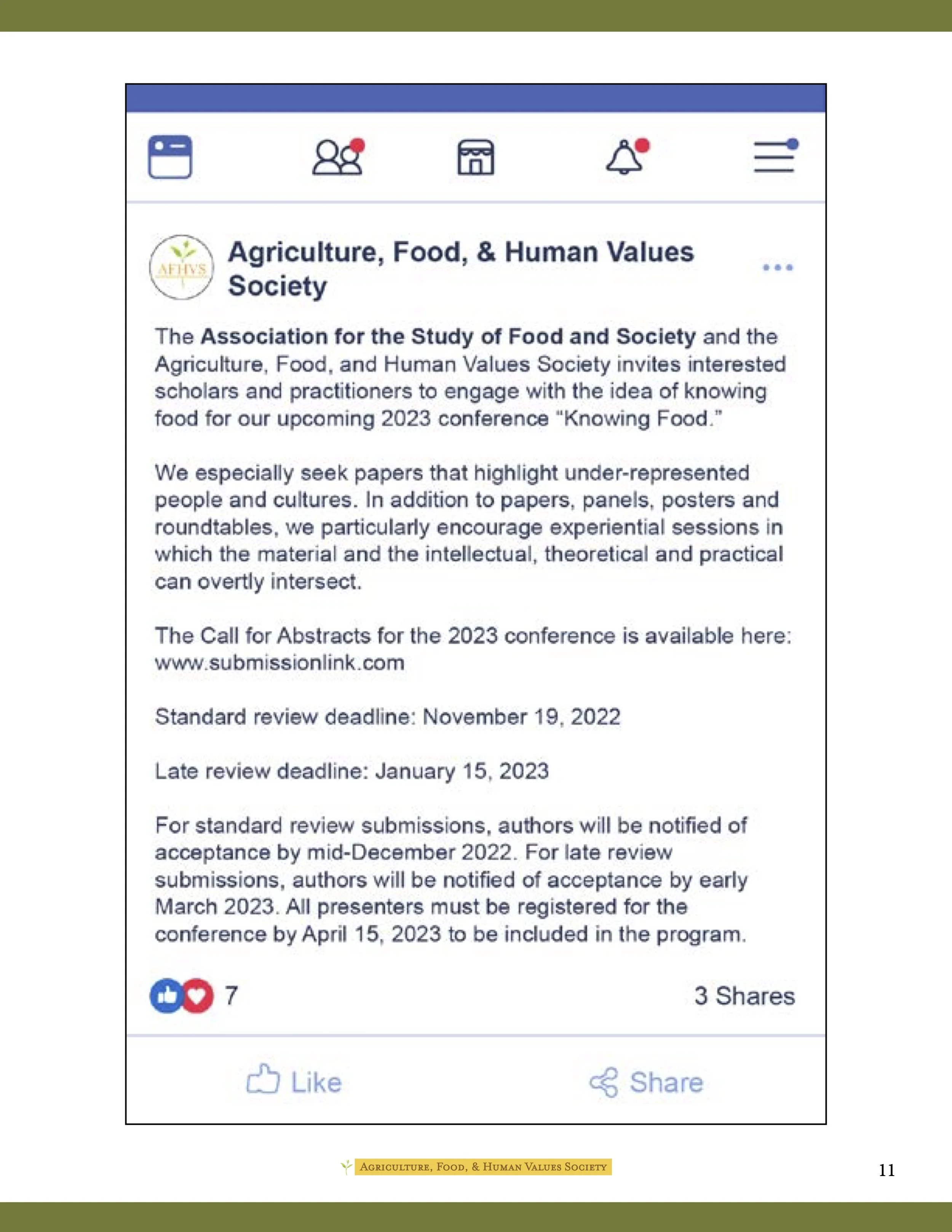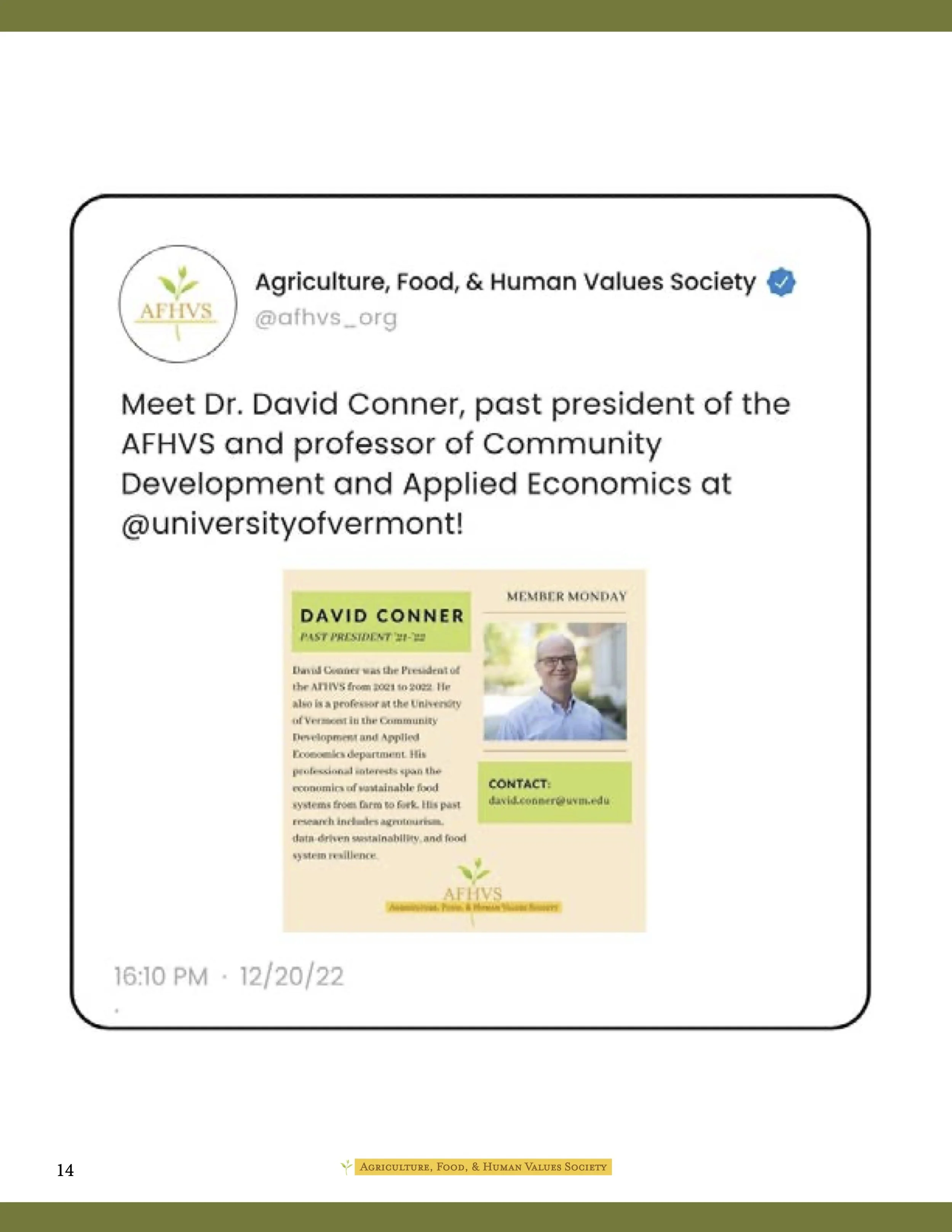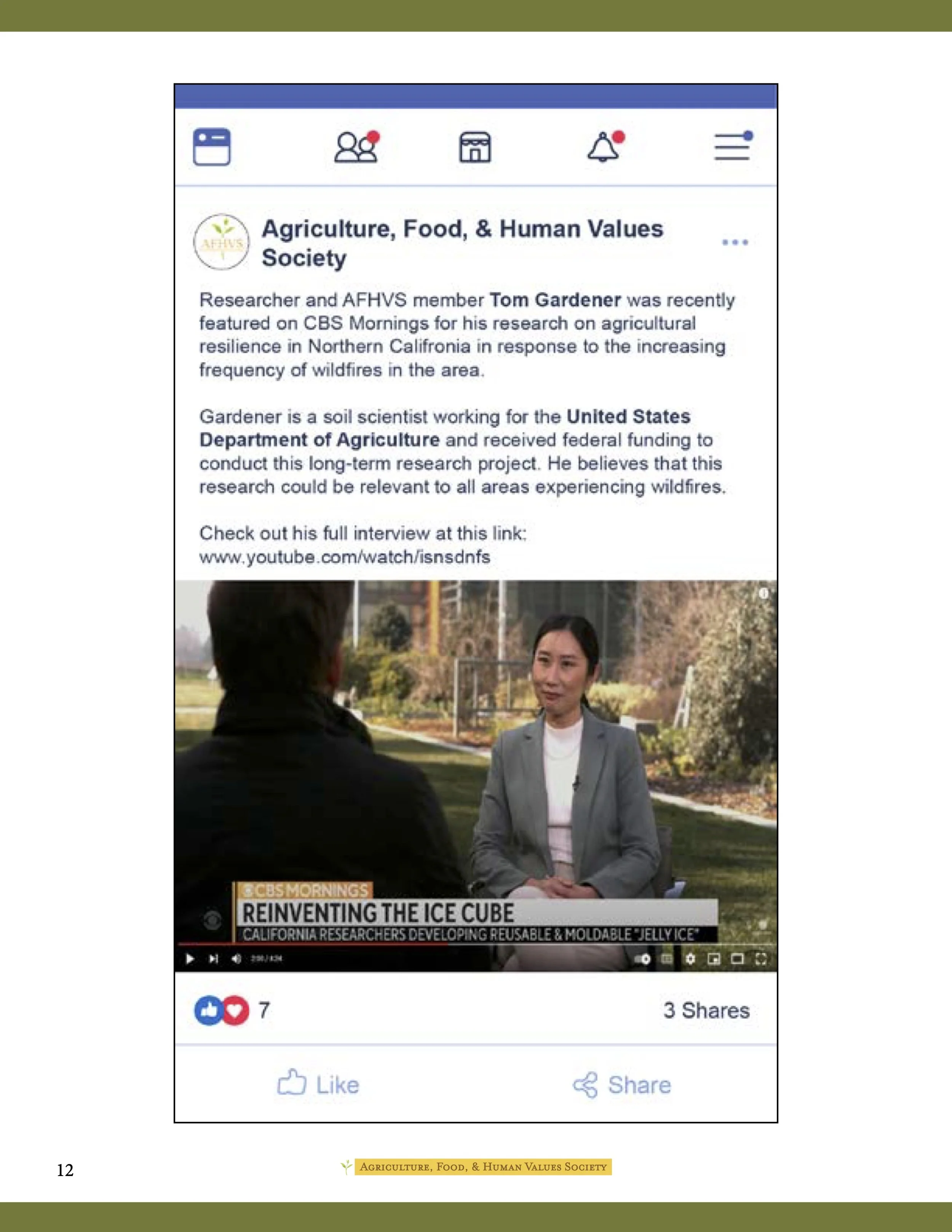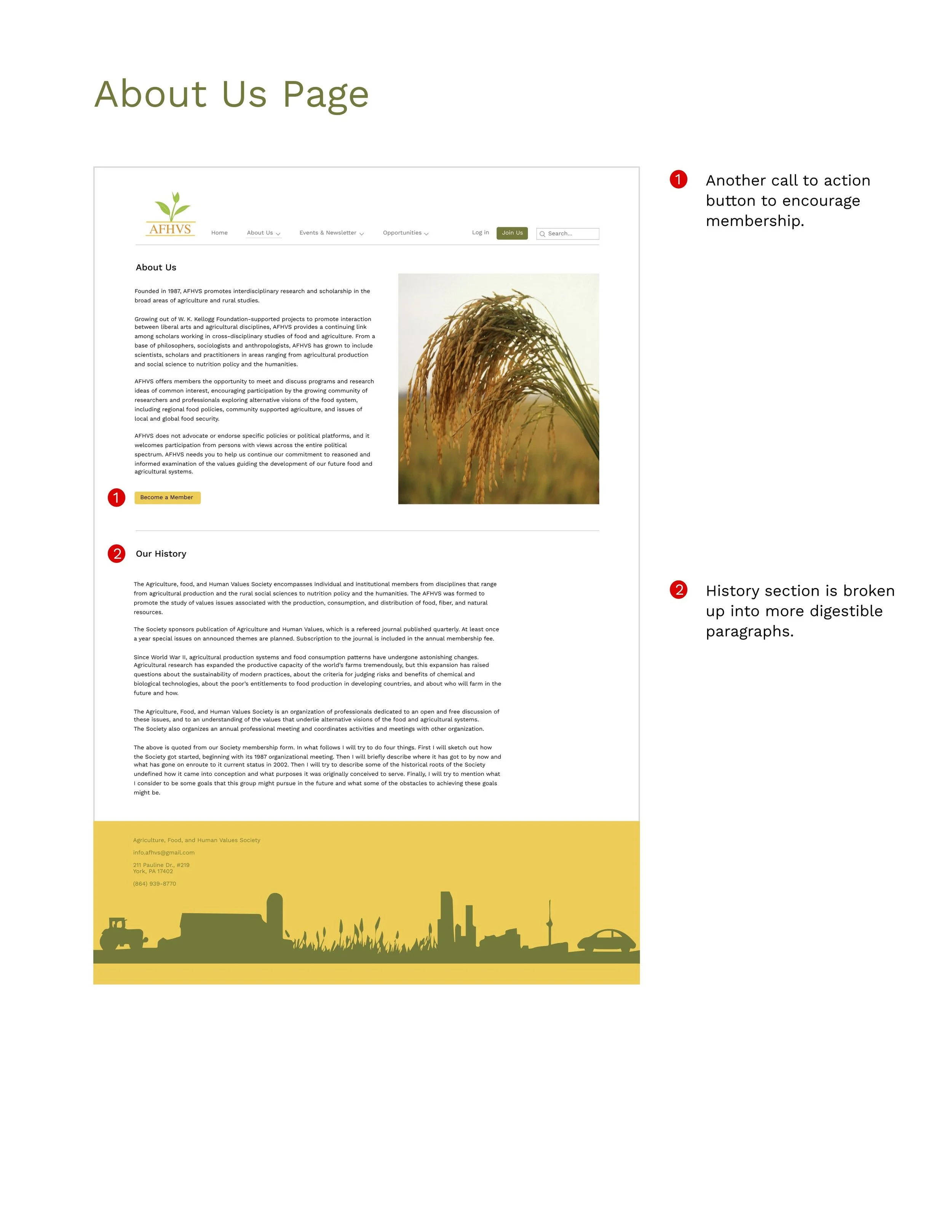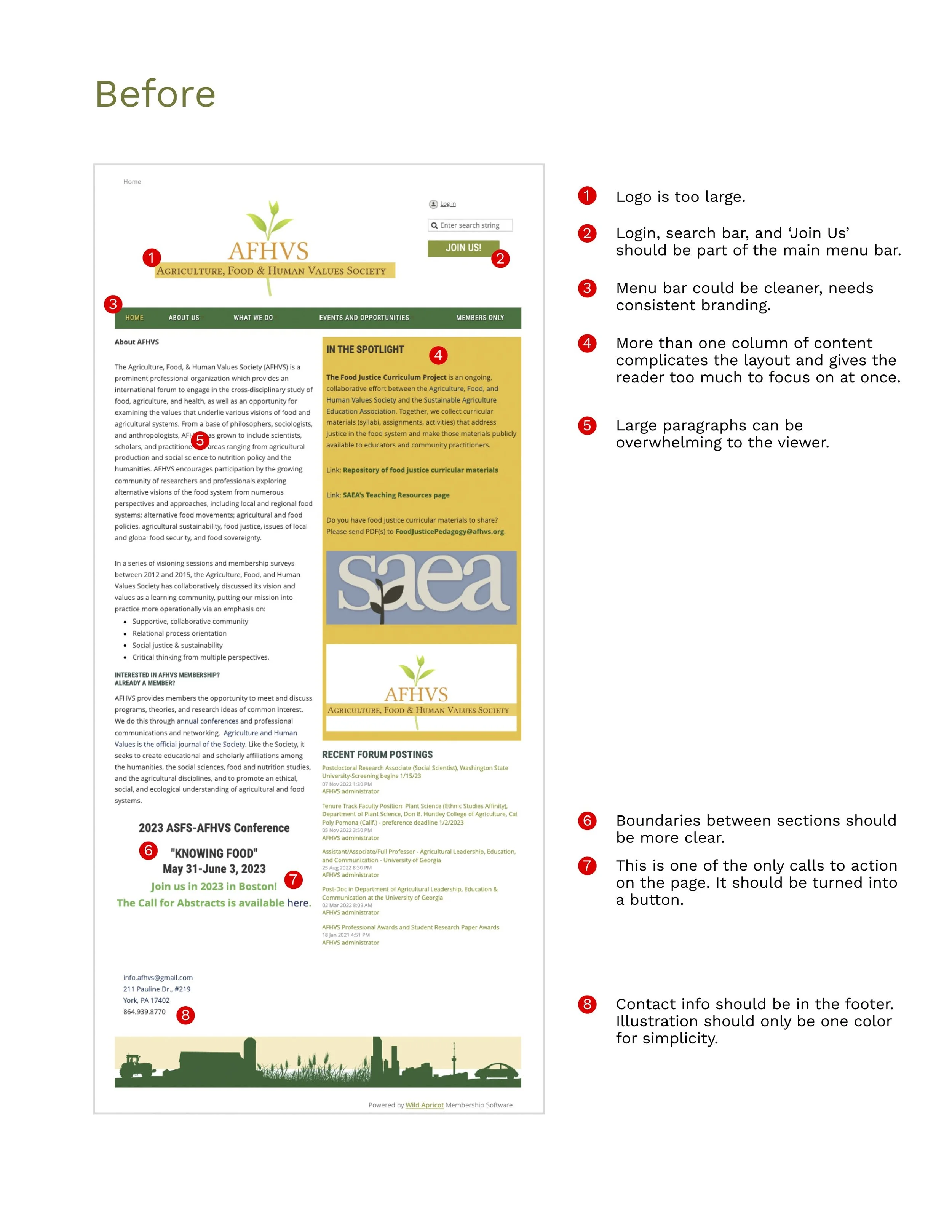 As part of a service-based learning class, I worked with a team of four other public communications students to provide the Agriculture, Food, & Human Values Society (AFHVS) with an updated digital identity and strategy. Deliverables included a mini brand identity kit, a logo redesign, recommendations for social media strategy and hiring practices, social media templates, letterhead templates, an email newsletter template, and a mockup of a website redesign for a future web designer.